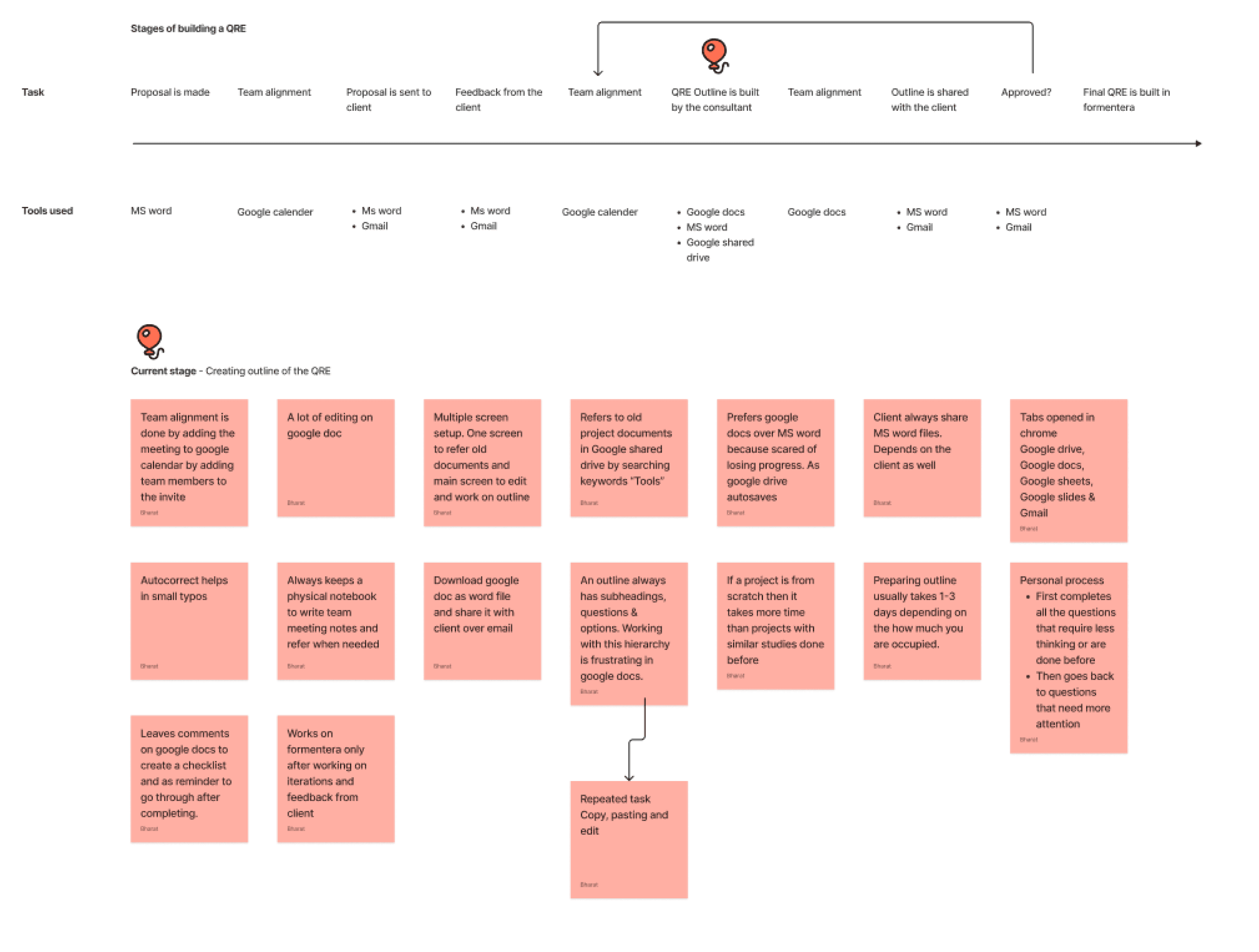 As a newbie to this domain and my role as a designer in the system the first step was to understand the process of research, how people work and what are the tools they are using and most importantly how do they feel.
