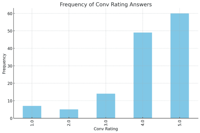 Average ratings improved from 4.0 to 4.6, as respondents found the conversations more engaging and enjoyable.