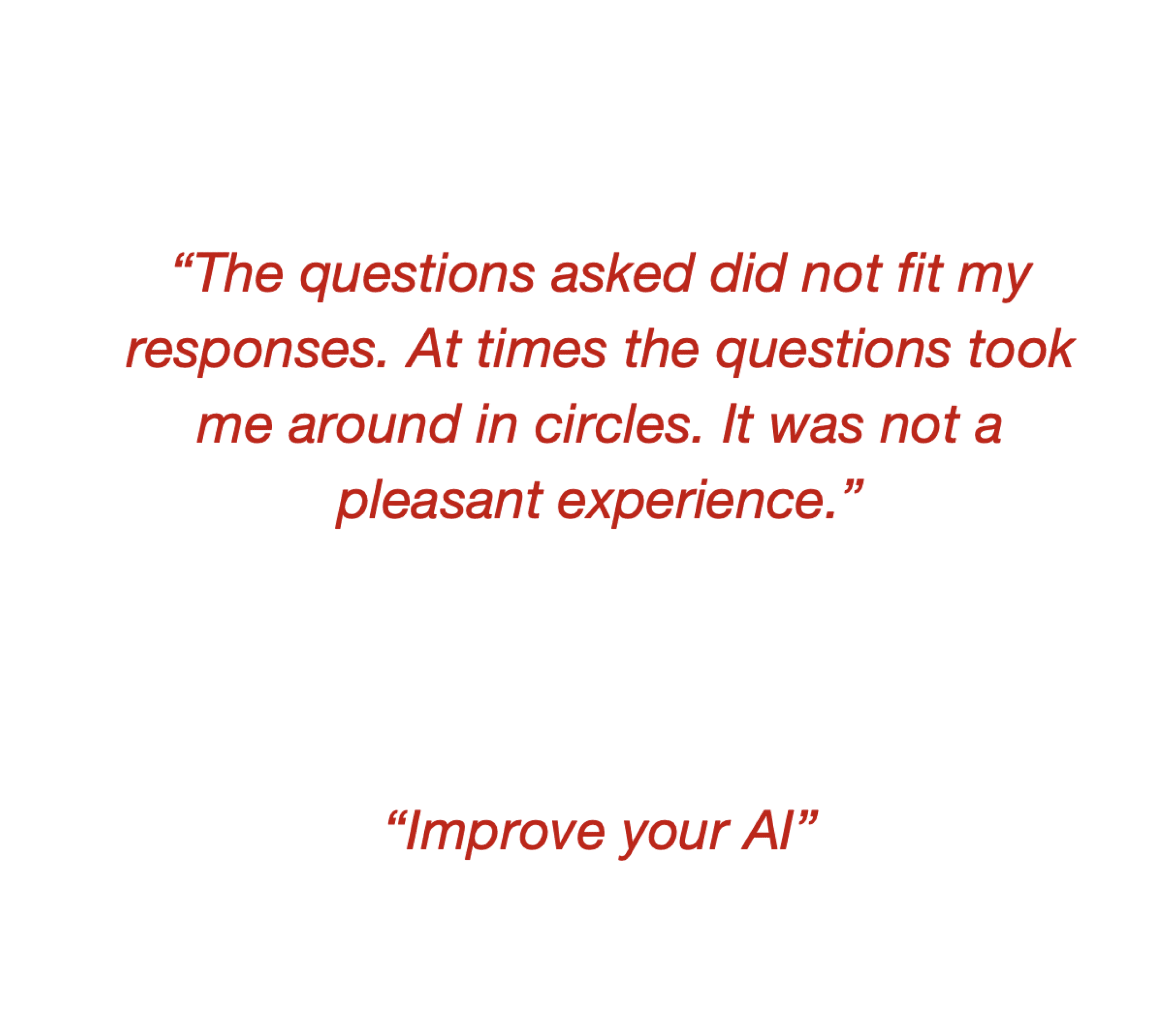Not everything worked right away. In the pilot, the AI sometimes misunderstood context and asked repetitive or irrelevant questions. Respondents noticed and some were frustrated.