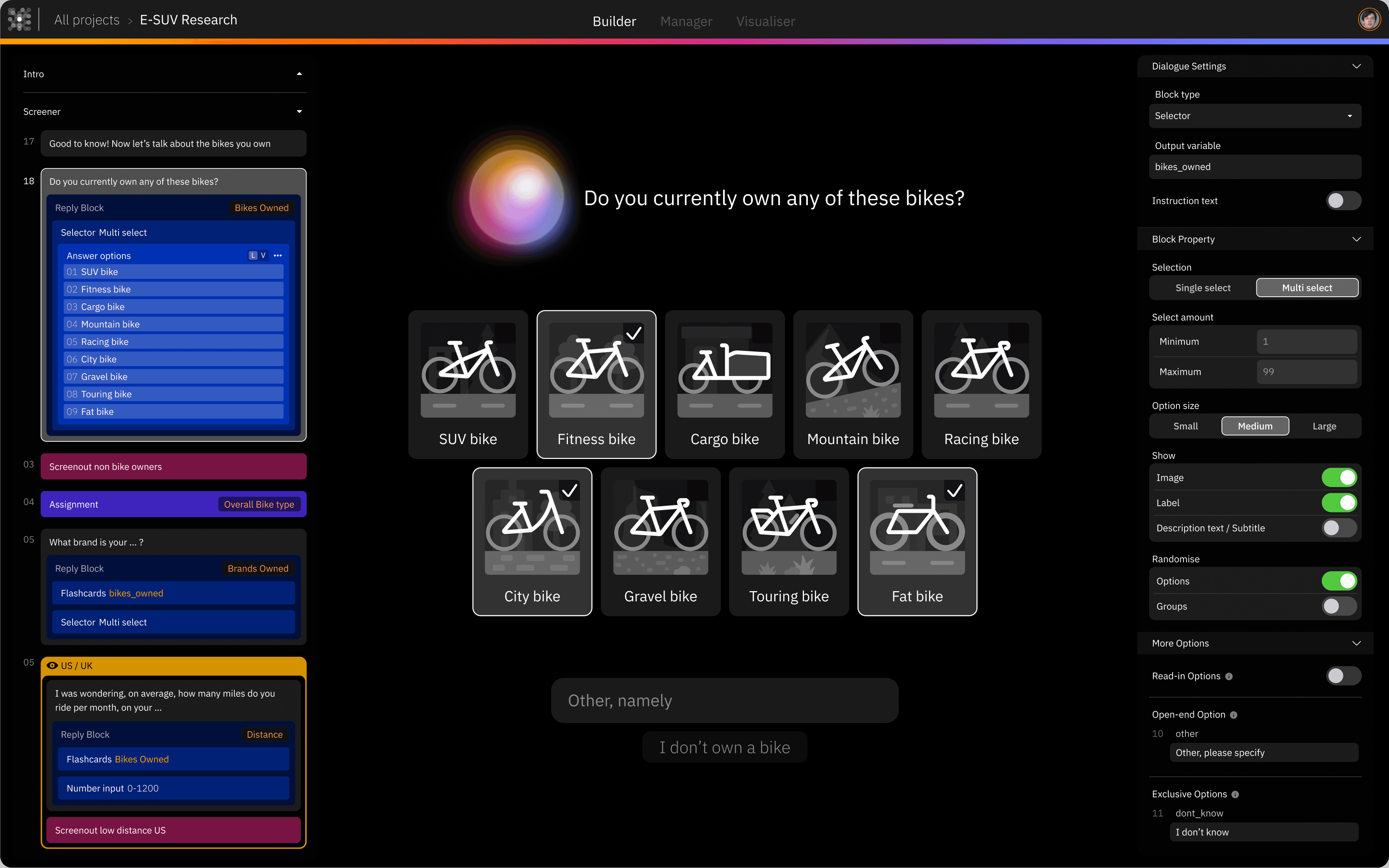 But what we noticed missing was just as important. Few tools supported complex custom routing. None really leaned into conversational respondent engagement. And in the end, most platforms felt the same: standard, technical, uninsipiring, surveys dressed up in different visuals, but still surveys.